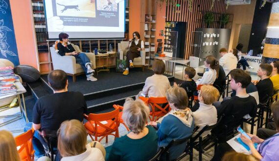В начале встречи о том, почему коты падают только на лапы, какая книга нужна, если вы смотрели аниме «Твоё имя», а также про кота Теслы и коте Дьюи, рассказали сотрудники Челябинской областной научной библиотеки.