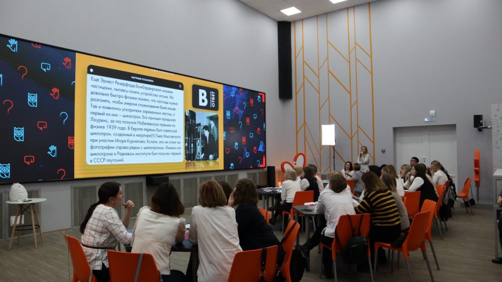 Объединившись в шесть команд, они ответили на 15 вопросов об исследованиях, научных открытиях, биографии Игоря Васильевича и других советских учёных, занимающихся ядерной энергетикой. При этом в ходе игры было важно не только правильно отвечать на вопросы, но и делать на них ставки, верно оценивая свои силы.
