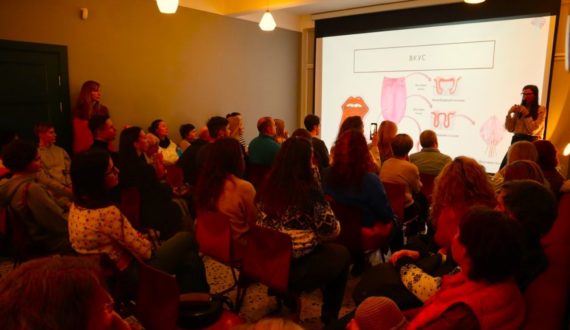 Анна Хоружая на лекции «Мозг-гурман: нейрофизиология гастрономических удовольствий» подробно рассказала о том, как влияют обоняние, зрение, осязание, вкус и даже речь на гастрономические предпочтения человека. Так, слушатели узнали, что наука в последние годы открыла механизм восприятия ещё нескольких вкусов: к уже известным солёному, кислому, сладкому и горькому добавились умами, жирный, металлический и щелочной.