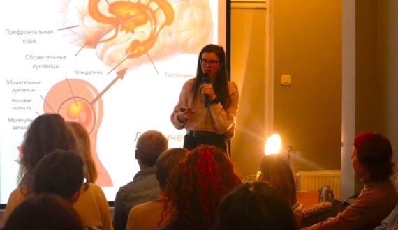 Анна Хоружая на лекции «Мозг-гурман: нейрофизиология гастрономических удовольствий» подробно рассказала о том, как влияют обоняние, зрение, осязание, вкус и даже речь на гастрономические предпочтения человека. Так, слушатели узнали, что наука в последние годы открыла механизм восприятия ещё нескольких вкусов: к уже известным солёному, кислому, сладкому и горькому добавились умами, жирный, металлический и щелочной.