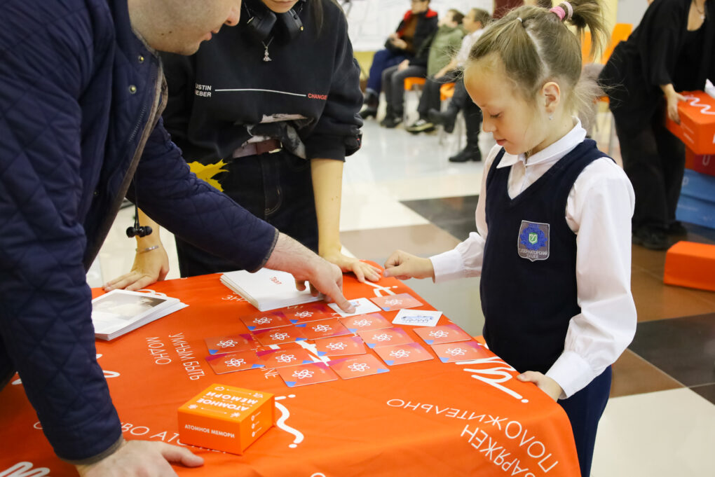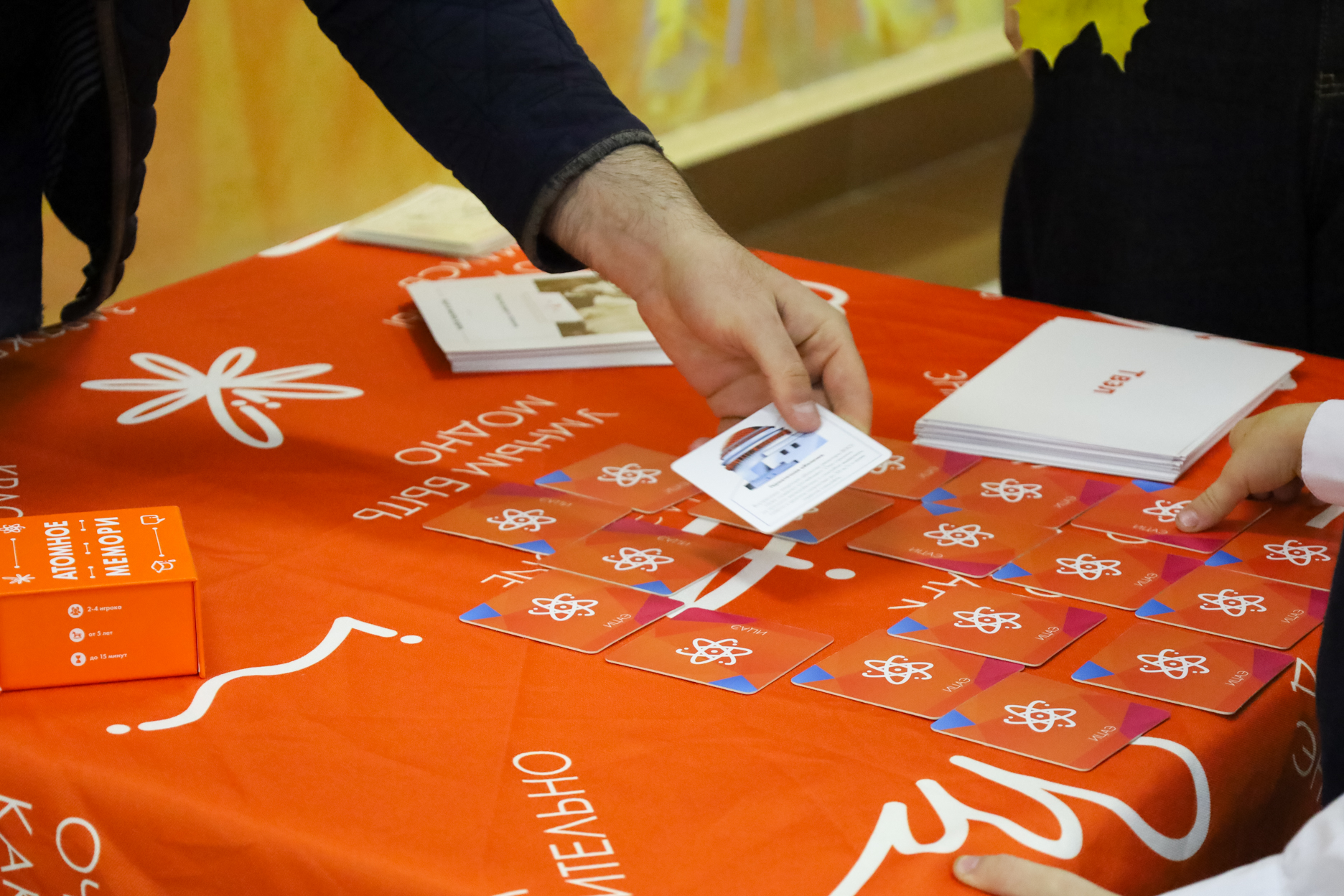 На игровой площадке участники могли попробовать свои силы в фирменных играх сети ИЦАЭ — «Хронограф», «Чепухатом» и «Физическая дженга». Особое внимание привлекла настольная игра «Атомный мемо», в которой необходимо было не только запомнить расположение карточек и собрать пары, но и назвать факты об объектах атомной отрасли. «Думал, просто потренирую память, а в итоге запомнил, что такое ПАТЭС и как применяется радиоизотопное датирование», – отметил один из участников игры.