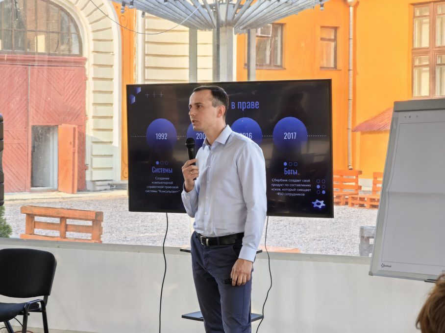 Лекция началась с рассказа о хронологии инноваций в праве, начиная с создания первой компьютерной справочной правовой системы и заканчивая продуктами, замещающими сотрудников крупных компаний. «К настоящему моменту можно говорить о появлении и апробации многих технологий в сфере юриспруденции, которые используют либо машинные алгоритмы, либо собственный искусственный интеллект», – рассказал эксперт. Например, существуют инструменты для предсказания решений Европейского суда по правам человека (ЕСПЧ), а также технологии, использующиеся при подборе персонала и подготовке кадров.