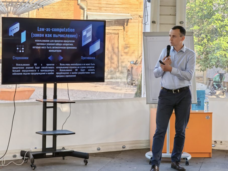 Как правильно использовать искусственный интеллект в правовой системе и какие могут быть последствия при ошибках разработчиков? Кому принадлежат права на текст, сгенерированный нейросетью? Об этом и многом другом узнали 6 июля посетители научного дворика Информационного центра по атомной энергии (ИЦАЭ) Нижнего Новгорода.