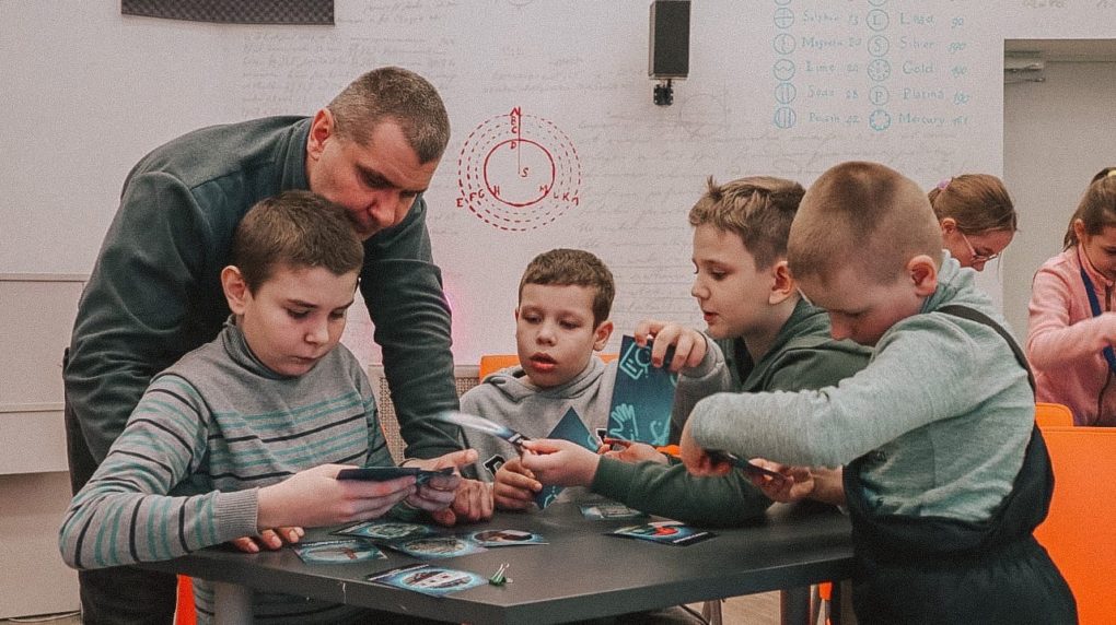 Занятие прошло в интерактивной форме – на все вопросы ребята отвечали на онлайн-платформе Mentimeter через мобильные телефоны, а ответы появлялись на большом экране. С помощью набора карточек команды выстроили маршрут, по которому электрический ток приходит в розетку от электростанции.