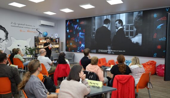 Вечер начался с «Научной гостиной». Гости смогли поиграть в любимые настольные фирменные игры сети ИЦАЭ. Затем игроки разделились на шесть команд, чтобы найти уран и разгадать все тайны интеллектуальной детективной игры «Дело №80: урановый проект».