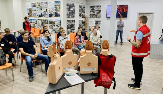 Вечер начался с мастер-класса по оказанию первой помощи от инструктора по первой помощи Российского Красного Креста Никиты Васильева.