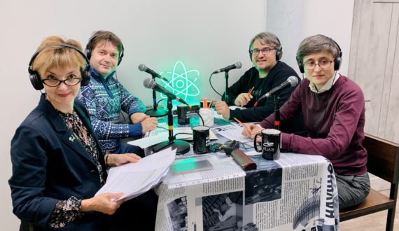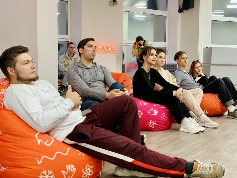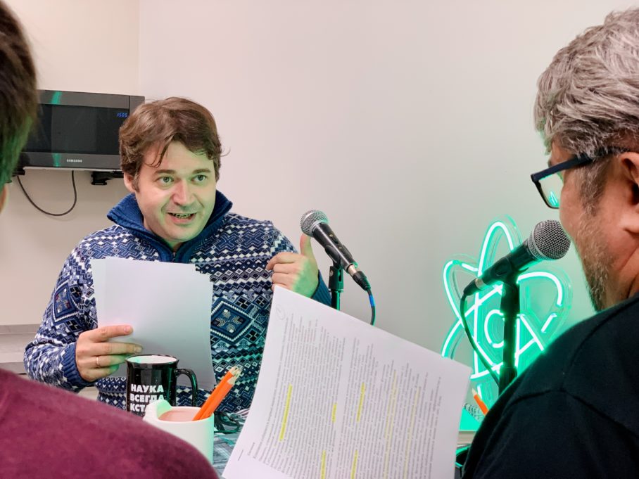 В камерной атмосфере на кухне ИЦАЭ эксперты обсуждали новости науки, а зрители наблюдали за этим на большом экране в кинозале центра.