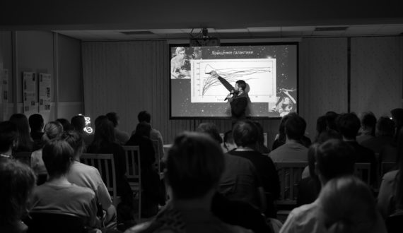 1 февраля в Библиотечном центре Екатеринбурга состоялась открытая лекция «Темные делишки вселенной», организованная Информационным центром по атомной энергии (ИЦАЭ) Екатеринбурга. О нерешённых проблемах астрофизики, о тёмной материи и тёмной энергии рассказал научный сотрудник Крымской астрофизической обсерватории и популяризатор астрономии Сергей Назаров.