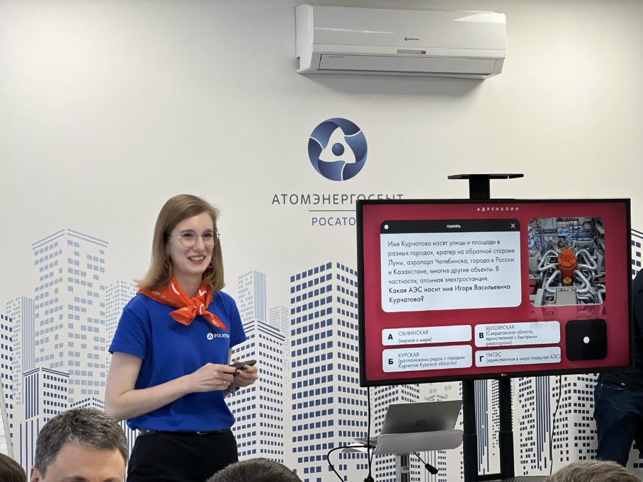 В честь юбилея великого атомщика Информационный центр по атомной энергии (ИЦАЭ) Смоленска провел игру «Адреналин», вопросы которой были связаны с жизнью Курчатова, его научными открытиями и вкладом в создание атомной отрасли. Мероприятие организовано совместно с филиалом «АтомЭнергоСбыт» Смоленск. В преддверии 23 февраля — Дня защитника Отечества, в коворкинге регионального филиала «АтомЭнергоСбыт» собрались только мужские команды: «Дети ЗОЖ», представлявшие хозяев площадки; «Атомный Сбер» из ПАО «Сбербанк», «СРТЭ» из ООО «Смоленскрегионтеплоэнерго» и «Открытый Wi-Fi» из ПАО «Ростелеком».