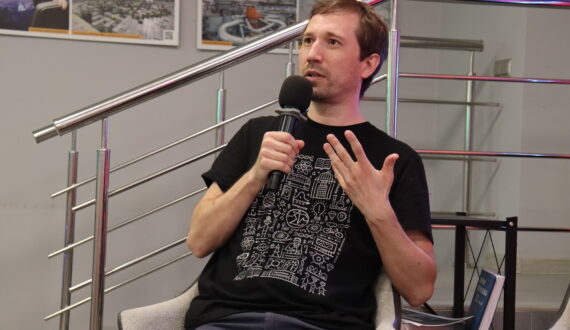 Ребята спрашивали про жизнь муравьёв, если погибнет их королева, про то, сколько кг способна выдерживать паутина паука, и способен ли паук победить муравья в реальной жизни. Паук может напасть на муравейник, только муравьи разорвут его на части, ответил Артём Мишулин.