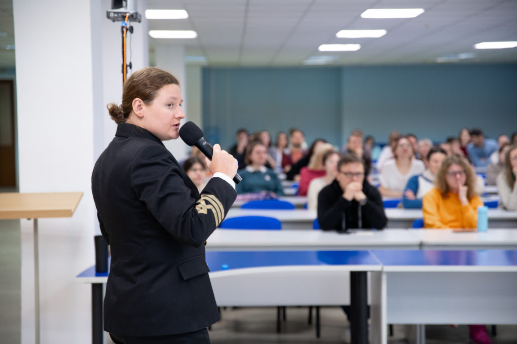 Сначала Диана Киджи выступила для школьников гимназии №9. Они задавали много вопросов о целях исследования Арктики и освоения северных территорий. По словам спикера, Арктика — это кладовая, где сосредоточено более 30% природных ресурсов нашей страны. И если в 20 веке большой интерес вызывала добыча руды, то сегодня в фокусе нефть и газ.