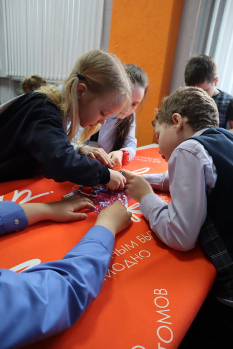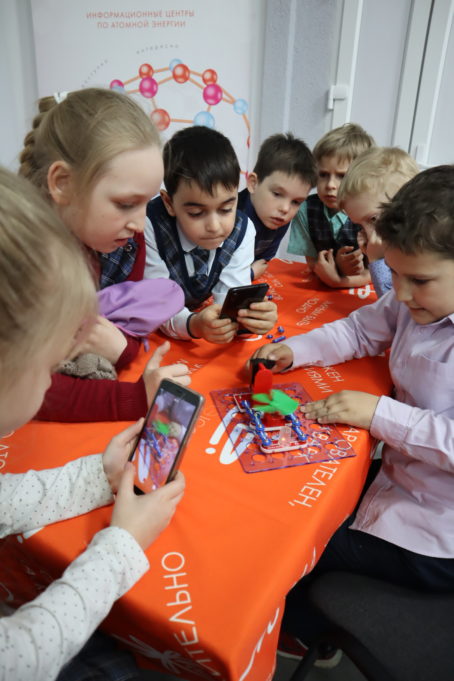 Во время урока ребята энергично отвечали на все вопросы ведущего, активно участвовали во всех приготовленных командой ИЦАЭ Калининграда активностях, решали квиз. Больше всего участников урока заинтересовала работа с электронным конструктором “Знаток”: они сами с помощью механических действий генерировали электричество.