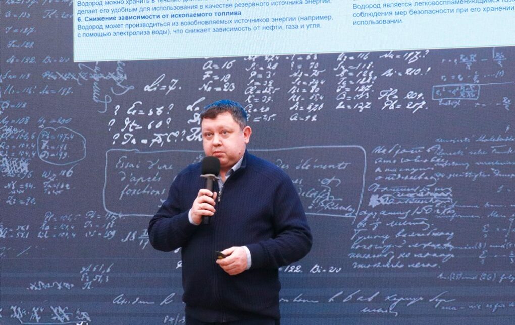 Сергей Александрович показал устройство водородного двигателя и схему работы топливного элемента. Он отметил: «Топливный элемент может использоваться как основной источник энергии для движения автомобиля. В то же время может быть использована иная компоновка, когда водород является добавлением к основному источнику энергии – бензину или дизельному топливу».