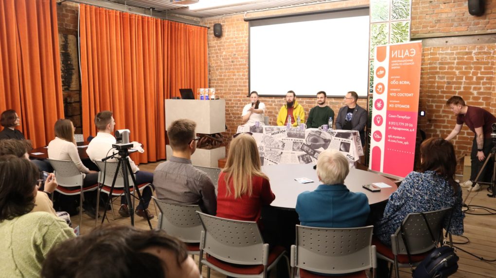 24 марта в Информационном центре по атомной энергии (ИЦАЭ) Санкт-Петербурга прошёл очередной «ИЦАЭ OPEN», в рамках которого состоялся шестнадцатый выпуск устного журнала «Язык Эйнштейна». Научный журналист, конфликтолог и специалист по искусственному интеллекту обсудили последние новости науки. Кроме этого, гости мероприятия поиграли в настольные игры и узнали, как рассказывать интересные истории. В этот раз «ИЦАЭ OPEN» прошёл в центре города в коворкинге «Ясная поляна».