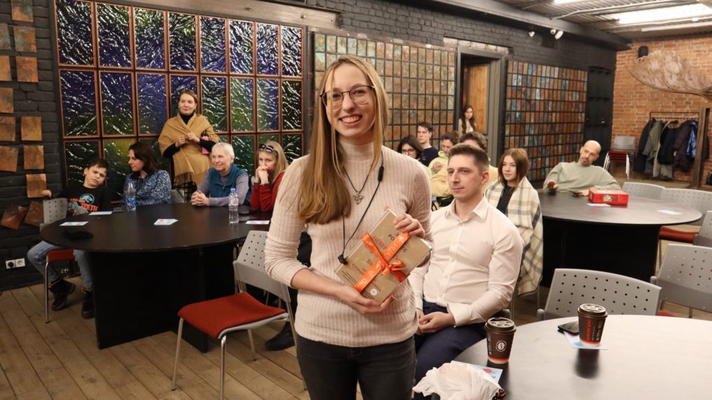 Мероприятие началось с открытия «Научной гостиной», где все желающие познакомились с научно-популярной литературой и поиграли в настольные игры. Менеджер по развитию ИЦАЭ Санкт-Петербурга Хасая Анжела провела мастер-класс о том, как качественно и интересно рассказывать истории. Вспомнили про структуру мономифа, «пути героя» и круге Хармона.