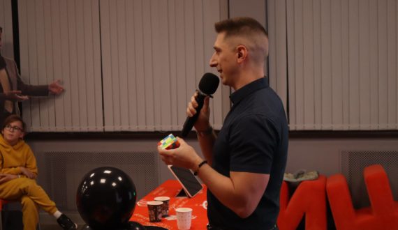 Завершением вечера стала лекция «Физика Дюны» от автора и ведущего проекта «Физика для гуманитариев» Георгия Тимса. Он не только рассказал, какие общие физические законы действуют на Арракисе и Земле, но и дал возможность слушателям применить некоторые из них на практике. Так, например, один из гостей лопнул шарики с помощью лазера.