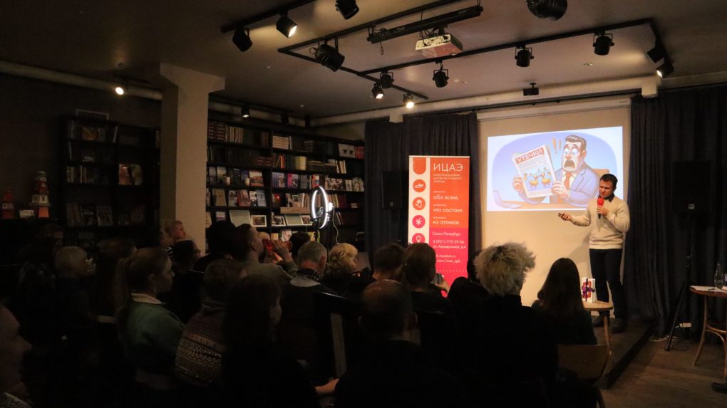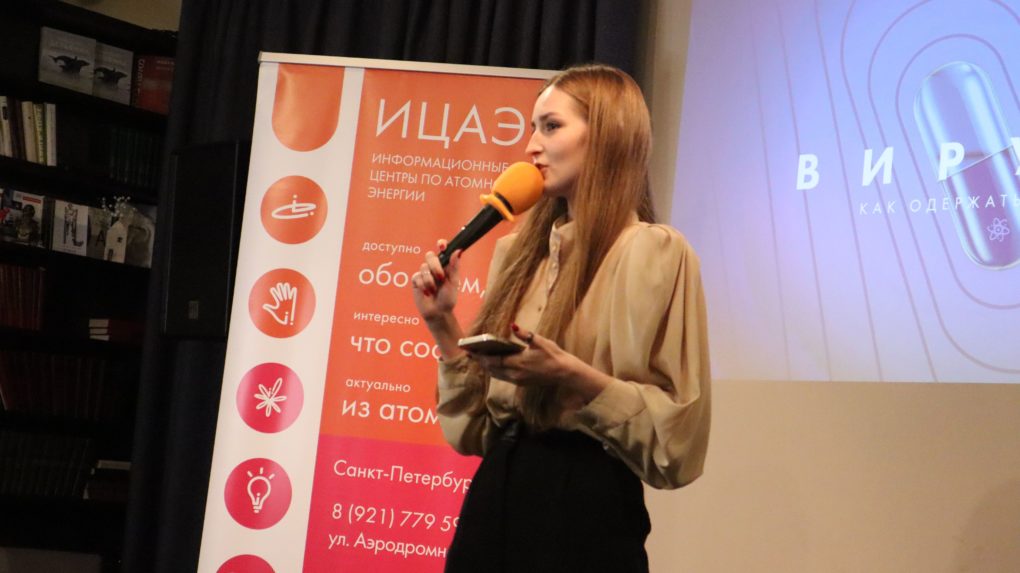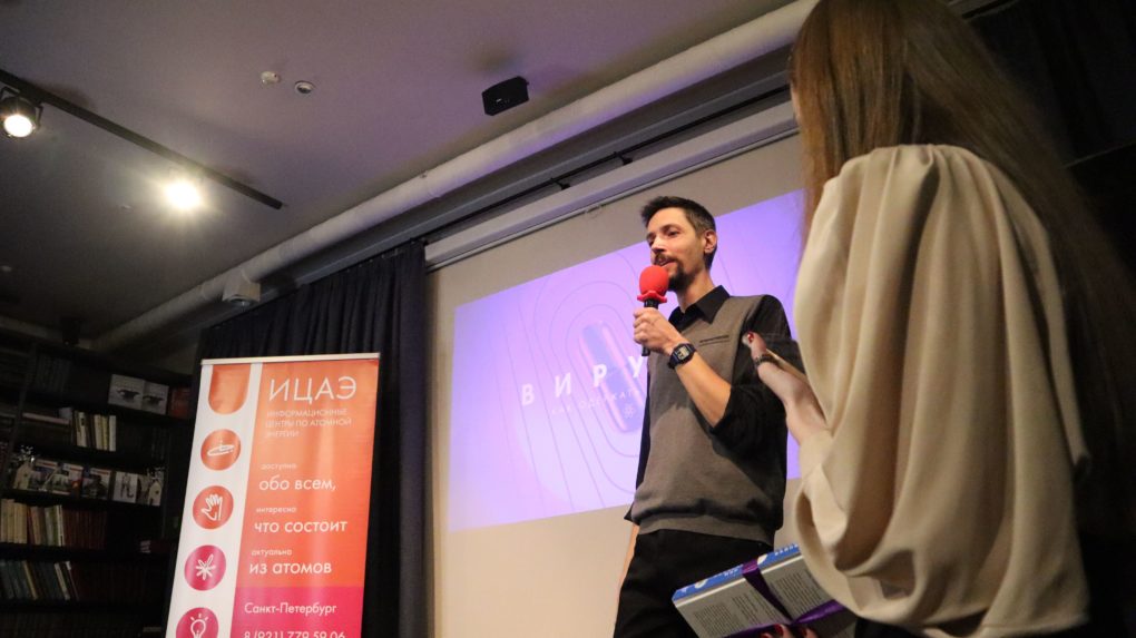 Три эксперта из разных отраслей знания — врач, атомщик и IT-специалист – рассмотрели вирусы с различных сторон в ходе научно-популярного ток-шоу «Разберём на атомы», которое провёл 26 октября на площадке арт-пространства и кофейни «Книги и кофе» Информационный центр по атомной энергии (ИЦАЭ) Санкт-Петербурга.