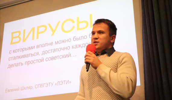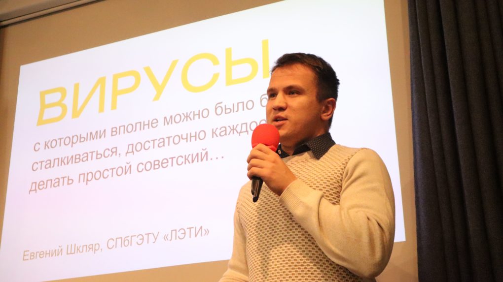 В завершение вечера ассистент кафедры информационной безопасности СПбГЭТУ «ЛЭТИ» — Евгений Шкляр, рассказал о способах мошенничества в интернете и информационной безопасности.