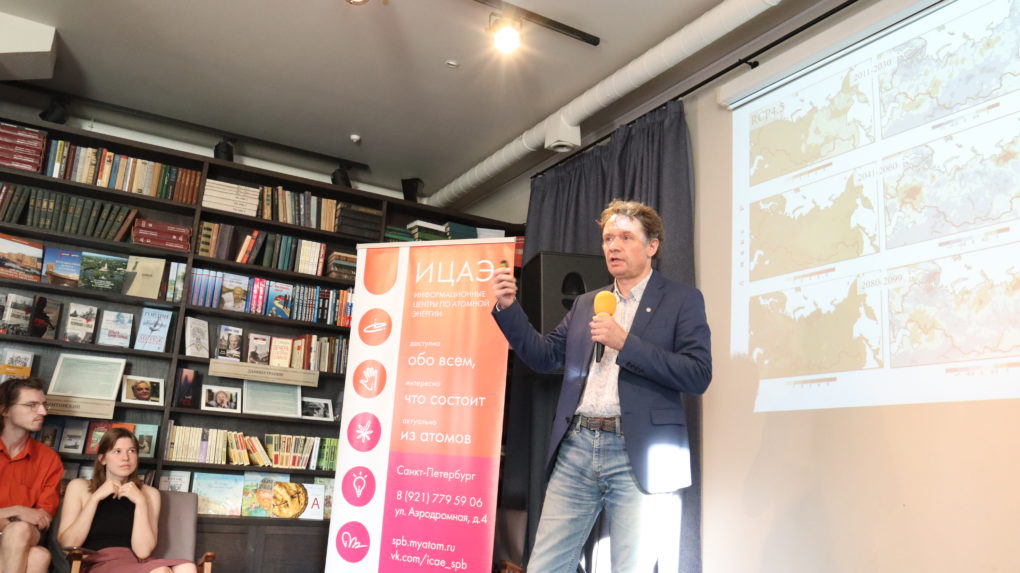 Жару «разобрали на атомы» врач, атомщик и гляциолог 13 июля на площадке арт-пространства и кофейни «Книги и кофе». Эксперты рассказали о лихорадке и тепловом ударе, объяснили, как на планете меняется климат и как быстро это происходит, и напомнили о том, как устроено «сердце» реактора и какие температуры достигаются в разных типах реакторов. Организатор научно-популярного ток-шоу – Информационный центр по атомной энергии (ИЦАЭ) Санкт-Петербурга.