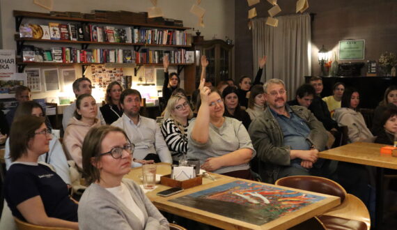 Вечером состоялся «ИЦАЭ OPEN: атомные страницы», приуроченный к первой годовщине книжного клуба «Атомные страницы», участники которого собираются каждый последний вторник месяца для обсуждения научно-популярной литературы.