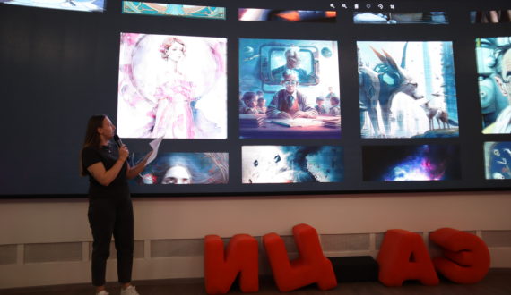 В память о мероприятии каждый желающий смог сгенерировать свою уникальную картинку с помощью нейросети. Результаты интерактива будут опубликованы в группе ИЦАЭ Нижнего Новгорода во ВКонтакте.