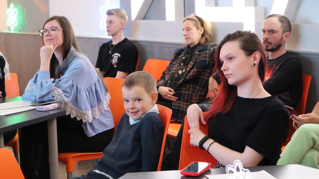 Вечер начался с традиционной экскурсии по ИЦАЭ Нижнего Новгорода, благодаря которой гости познакомились с экспонатами, а также проверили свои знания и интуицию с помощью чемоданчика «Детектор знаний», который работает на «энергии правильных ответов» по той или иной теме. Благодаря ответам, полученным по теме нейросетей, участники смогли запитать электричеством город, находящийся в чемоданчике.