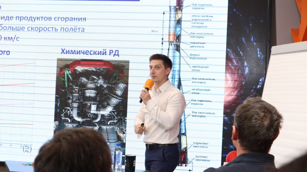 «Человечество уже давно начало думать, как усовершенствовать технологии, что придумать, как превзойти предел 20 км/с. Что, если нагревать топливную смесь с помощью ядерного распада?  Вариантов ядерных ракетных двигателей много. Традиционный ЯРДпредставляет собой конструкцию из нагревательной камеры с ядерным реактором как источником тепла, системой подачи рабочего тела и сопла. Реактор излучает тепло, рабочее тело проходит через камеру и отбрасывается. Ядерное топливо в рабочей камере может быть жидким, твёрдым и газообразным. Поэтому ядерные ракетные двигатели, основанные на распаде ядерного материала, делятся на твердофазные, жидкофазные и газофазные», — объяснил Георгий Тимс.