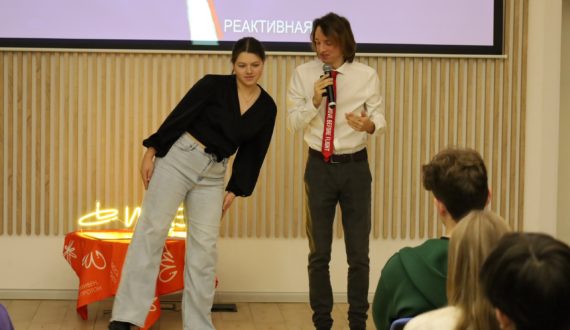 На лекции «Как работает ракета?», которая прошла в научной библиотеке, эксперт разобрал с владимирскими студентами принцип работы ракеты и способ управления ею в полёте. С помощью бутылки с водой Никита показал принцип взлёта ракеты и её выхода на баллистическую траекторию. Воздушный шарик помог объяснить работу примитивного реактивного аппарата, а юла или волчок — гиростабилизирующий эффект.