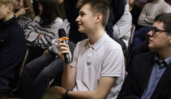 На второй лекции, которая состоялась в Промышленно-коммерческом лицее, Никита Матасов рассказал, зачем на Марсе нужен марсоход и на что он похож, зачем нужна экранно-вакуумная изоляция и как звучит эта планета. Школьникам понравилось наблюдать за спуском марсохода на поверхность планеты, а ещё рассматривать особый материал из золота и алюминия, который не позволяет марсоходу замёрзнуть.