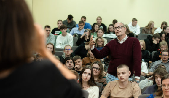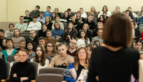 Программа началась с лекции «Почему все такие умные?» для всех желающих во Владимирском государственном университете имени Александра Григорьевича и Николая Григорьевича Столетовых. Евгения Тимонова разъяснила, почему так сложно измерить уровень интеллекта, и рассказала о том, как развивался мозг у наших предков и некоторых животных несколько миллионов лет назад.