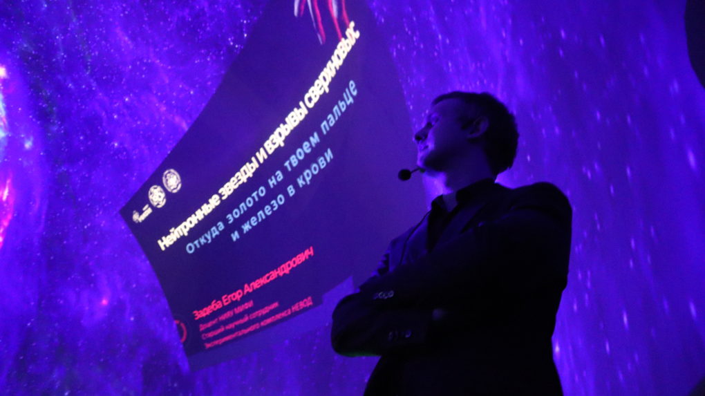 Егор Задеба – кандидат физико-математических наук, доцент отделения ядерной физики и технологий Национального исследовательского ядерного университета «МИФИ». В этот раз Егор посетил Нижний Новгород с новой лекцией «Нейтронные звёзды и взрывы сверхновых: откуда золото на твоём пальце и железо в крови», которая сопровождалась завораживающей анимацией под куполом «Планетария 1», погружающей зрителя в ощущение космической безмятежности.