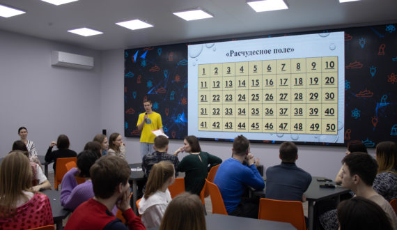 Также гости центра сыграли в интеллектуальную игру «Расчудесное поле». Победить в ней командам помогли не только эрудиция и находчивость, но ещё и удача. Команды выбирали клетку на поле и выполняли задания. Где-то нужно было ответить на вопрос, а где-то и отжаться пару раз. Были и ячейки с невыполнимыми званиями.