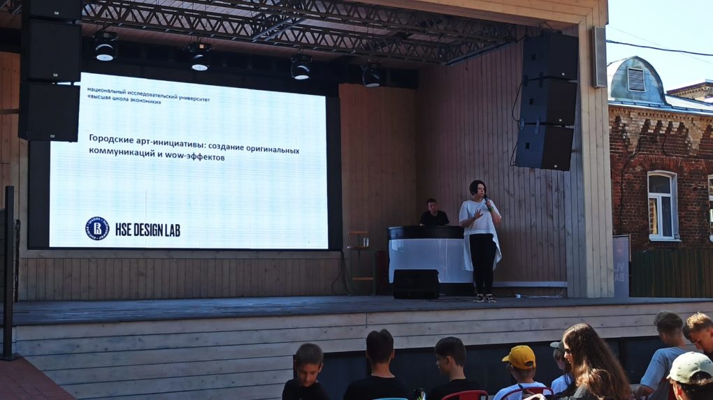 Перед начинающими и профессиональными художниками, а также жителями города выступила эксперт ИЦАЭ Татьяна Кривошеева, кандидат экономических наук, доцент Школы дизайна НИУ ВШЭ. Она рассказала о том, как создавать оригинальные коммуникации и WOW-эффекты с помощью городских арт-инициатив.