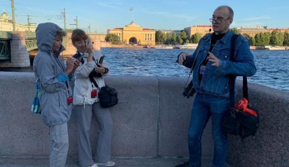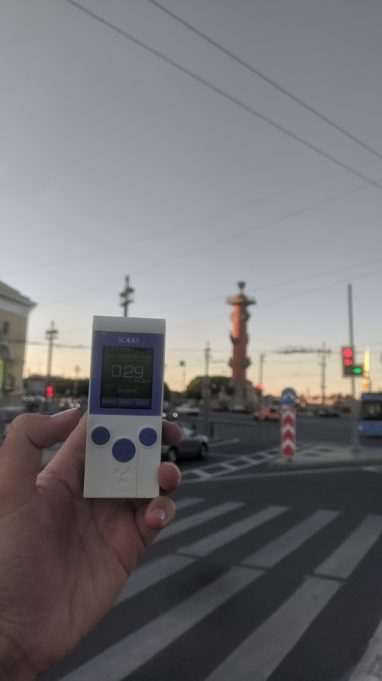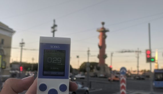 Во время прогулки с фотографом участники познакомились с ещё одним проектом сети ИЦАЭ – картой Гейгера. Это интерактивная карта, на которой можно самостоятельно разместить информацию о произведённых замерах. Активная часть посетителей прогулки замерила уровень радиации рядом с известными достопримечательностями – Стрелкой Васильевского острова и египетскими сфинксами на Университетской набережной.