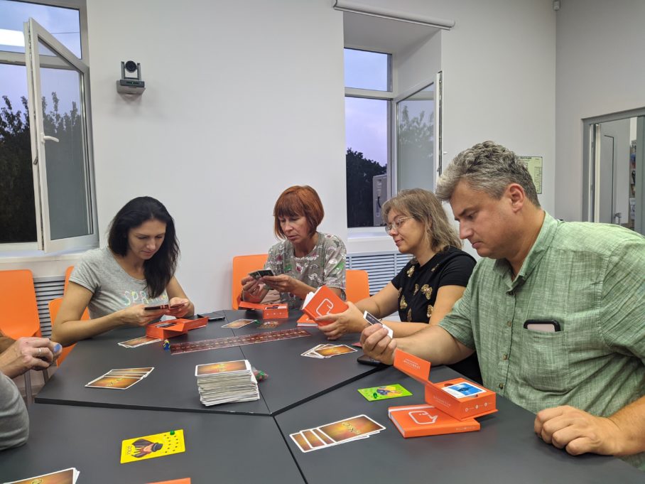 Участники игротеки сыграли в «Диксит» и «Атомный хронограф». «”Хронограф” – увлекательная игра и для детей, и для взрослых. Про даты некоторых открытий я помнила, но никогда не сопоставляла, что же случилось раньше – открытие космических лучей или изобретение трёхцветного светофора, создание атомного эталона секунды или появление электронной почты», — рассказала Татьяна Кротова, одна из посетителей ИЦАЭ.