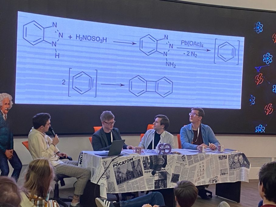 Про эксперименты учёных в области химии слушатели узнали от Евгения Буланова, кандидата химических наук, доцента кафедры аналитической и медицинской химии химического факультета ННГУ им. Лобачевского.