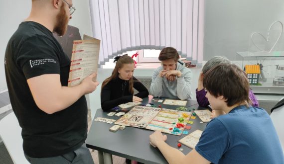 Гости центра смогли погрузиться в прошлое с настольной игрой «Генотип», чтобы помочь Грегору Менделю совершить переворот в научном знании. А помогал игрокам понять принцип игры системный администратор центра Яков Винс. Под чутким руководством сотрудника ИЦАЭ игроки уже на втором круге начали применять необычные ходы и придумывать стратегии как для собственного успеха, так и для усложнения движения к цели своим соседям по игре.