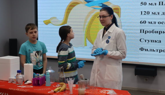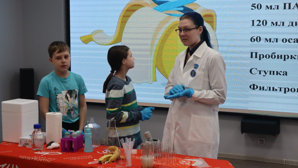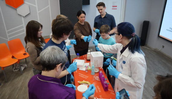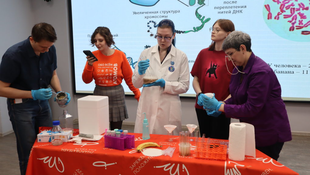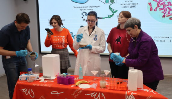 Помимо игротеки много внимания привлёк мастер-класс от специалистов Института цитологии и генетики СО РАН. Участники события вспомнили базовые знания по биологии, которые преподают в средней школе, и узнали рецепт для извлечения ДНК. Опытным образцом для гостей стали бананы, получить ДНК которых достаточно просто. Каждый участник мастер-класса смог внести вклад в результат команды. После нехитрых манипуляций с бананом и смешивания концентрированного раствора из соды и соли был получен фильтрат, и при помощи спирта гости получили ДНК фрукта в виде осадка.