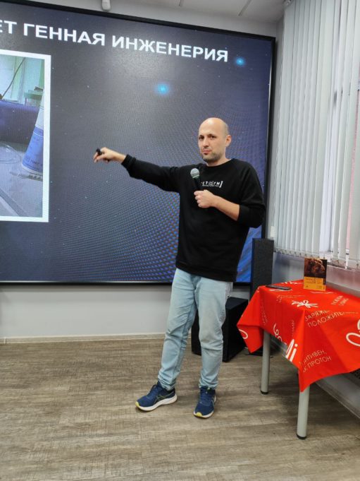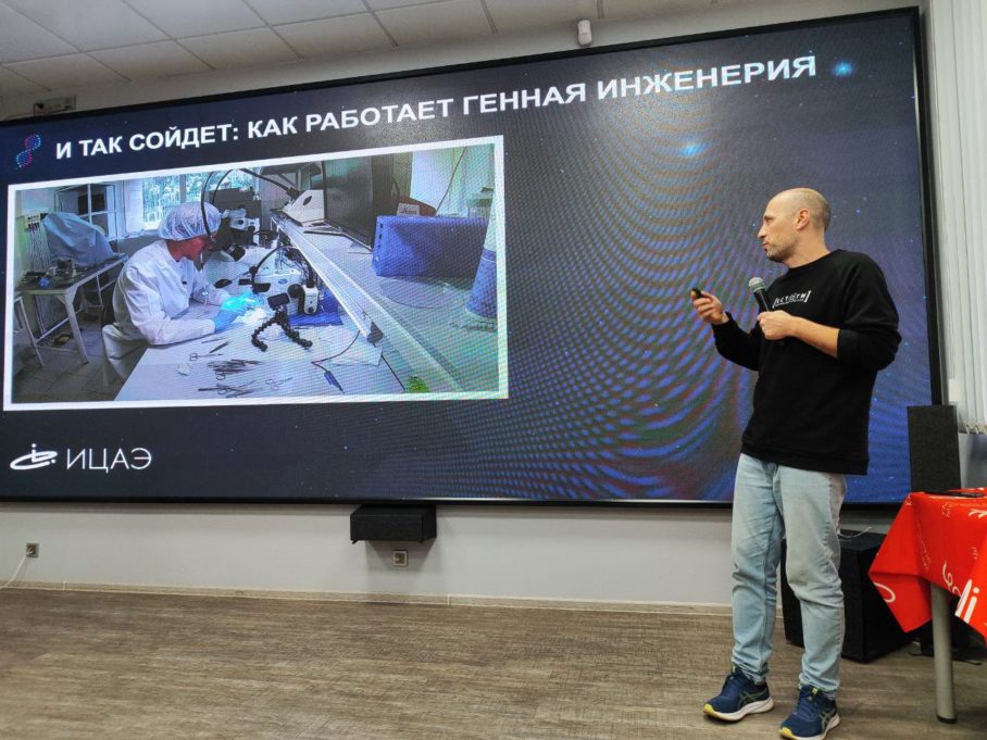 Завершился вечер лекцией Наримана Баттулина. Заведующий лабораторией генетики и развития Института цитологии и генетики СО РАН, кандидат биологических наук и генетик рассказал гостям о длительности достижения результатов и о том, как выглядит в реальности кинематографичная профессия генного инженера.