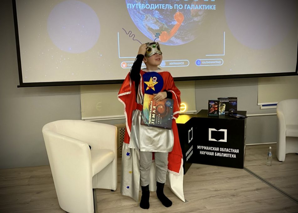 В завершение космической презентации ведущий из Калининграда отметил, что большинство присутствующих на телемосте представителей внеземных цивилизаций очень хорошо изучили внешний облик людей и выглядят очень похоже. А вот мурманское мероприятие посетил инопланетный космокот, который был награжден за оригинальный костюм научно-популярной книгой.