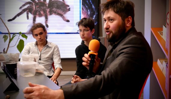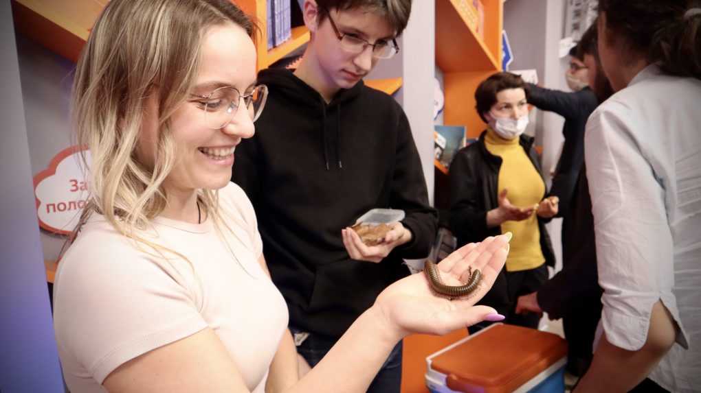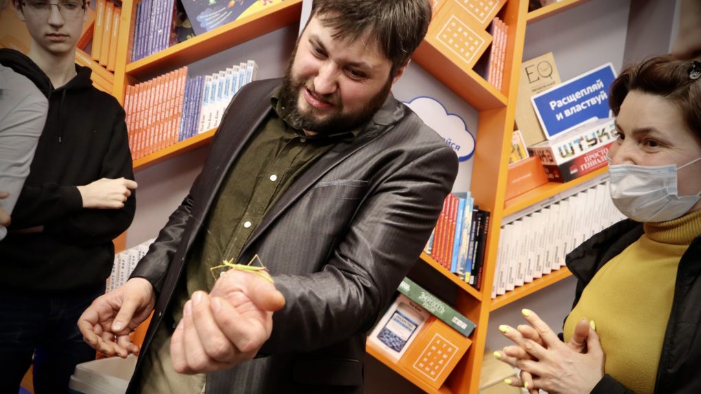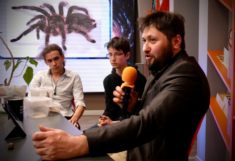 С фантастическими земными тварями – насекомыми – зрителей телемоста виртуально и реально познакомил Олег Валерский, энтомолог из Санкт-Петербурга, руководитель энтомологического кружка в эколого-биологическом центре «Крестовский остров». Учёный объяснил, что помимо насекомых, энтомологов интересуют и некоторые группы членистоногих, например, пауки, скорпионы, ракообразные и мокрицы.