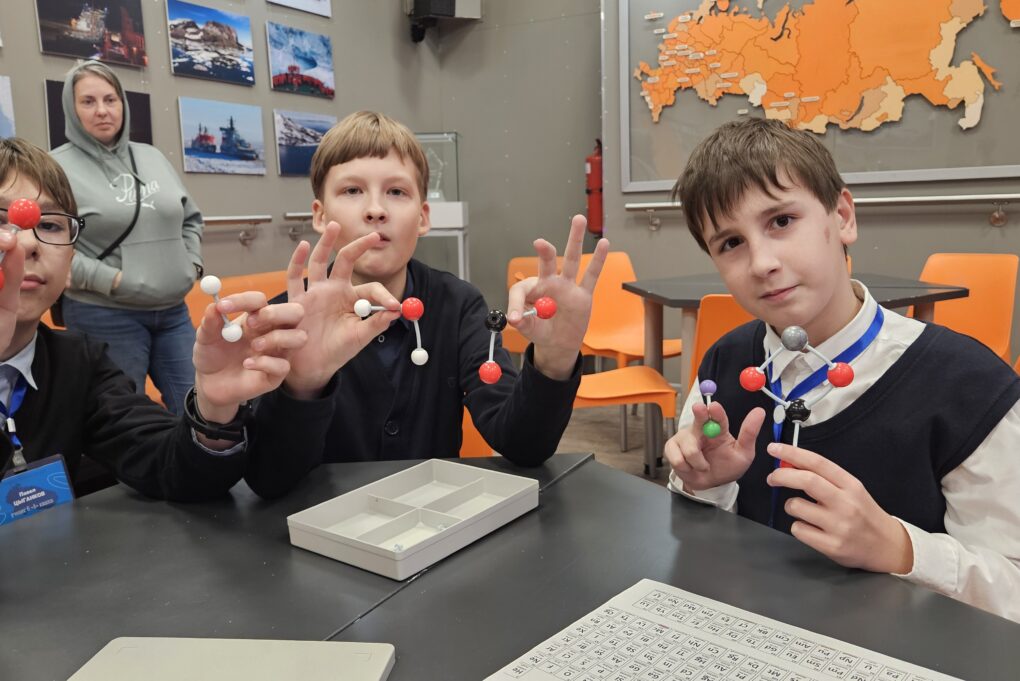 Как устроен атом и почему одни вещества твёрдые, а другие умеют течь и испаряться, сколько атомов нужно, чтобы получить молекулу воды или мела? На эти вопросы школьники получили ответы в ходе занятия, на котором построили объёмную модель простейших химических элементов.