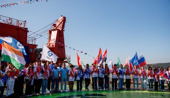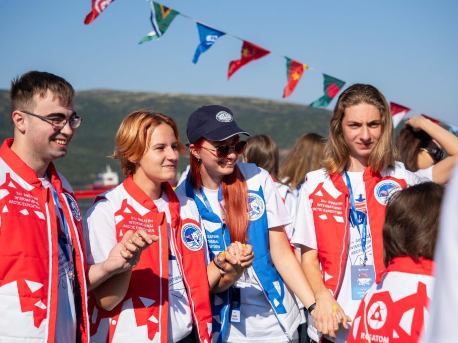 Основной состав юбилейной пятой арктической экспедиции «Ледокол знаний» — 63 талантливых школьника, в том числе 10 участников из-за рубежа — стран, где Росатом развивает атомные технологии (Армения, Узбекистан, Казахстан, Кыргызстан, Беларусь, Монголия, Венгрия, Индия, Китай, ЮАР). Вместе с ними к Северному полюсу отправились 15 экспертов — делегатов, отобранных в рамках Всемирного фестиваля молодежи в Сочи 2024 года. Среди них представители таких стран, как Камерун, Ирак, Бангладеш, Тунис, Беларусь, Узбекистан и др.