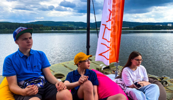 «Научный рейс» на плоту по Кантатскому водохранилищу организовал в Железногорске Информационный центр по атомной энергии (ИЦАЭ) Красноярска 1 июля. Прогулка по воде сопровождалась необычной лекцией с практическими экспериментами на борту и игротекой – на берегу.