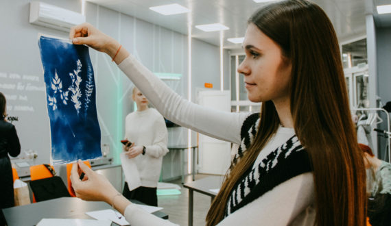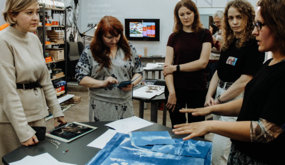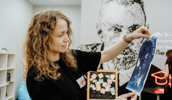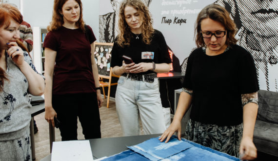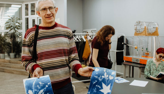 В продолжение темы в ИЦАЭ Красноярска состоялся мастер-класс по цианотипии, который для гостей провела художница и куратор выставочных проектов Музейного центра «Площадь Мира» Анастасия Безвершук. Цианотипия — это уникальная техника получения необычных изображений синего оттенка под воздействием ультрафиолета. Этот мастер-класс стал отличной возможностью увидеть, как соприкасаются наука и искусство — каждый участник создал небольшое полотно с отпечатками фрагментов рентгеновских снимков и растений, которые проявились под ультрафиолетом.