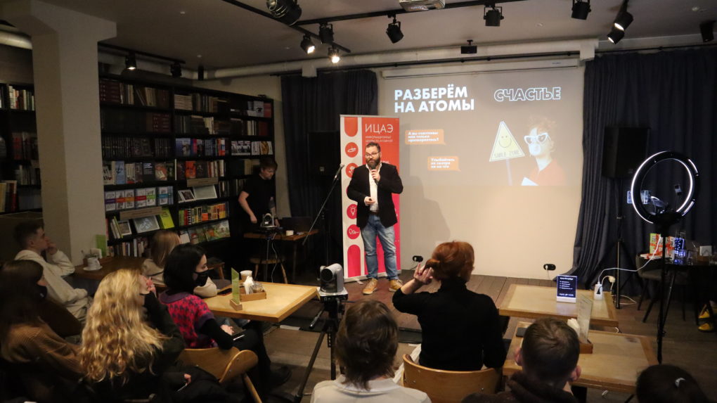Достижимо ли счастье с точки зрения биологии? Откуда взялось слово «счастье» и как оно трактуется в разных языках? Влияют ли экономические факторы на достижение счастья? На эти и другие вопросы ответили эксперты научно-популярного ток-шоу «Разберём на атомы: счастье», которое прошло 16 ноября в арт-кафе «Книги и кофе». Организатором мероприятия стал Информационный центр по атомной энергии Санкт-Петербурга.