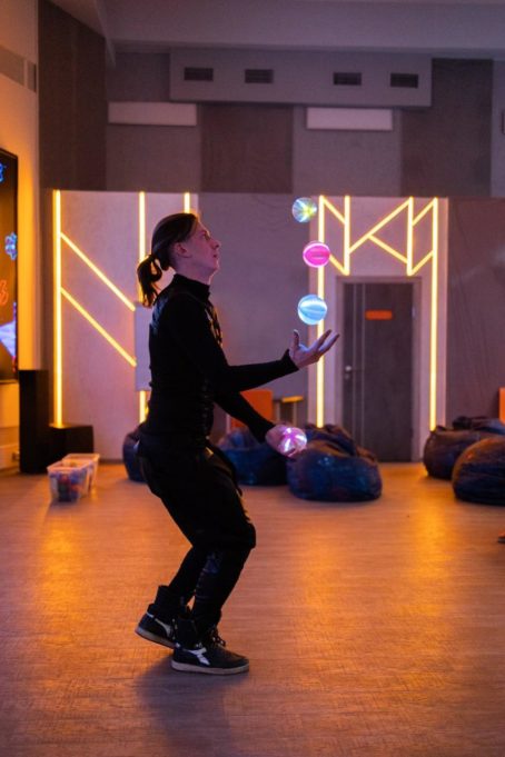После зарядки дети переместились в ИЦАЭ на мастер-класс по жонглированию. Школьники узнали, что жонглирование — это не только отличное развлечение, но и проверенное средство для всестороннего развития личности.
