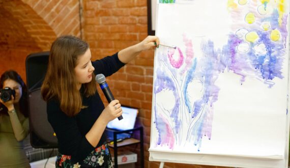Вечер начался с мастер-класса по рисованию «Встречаем весну!». Его участники окунулись в мир весеннего вдохновения, изобразив свой особенный букет из тюльпанов и одуванчиков вместе с настоящим художником, специалистом Творческой мастерской «Вместе» Александрой Таушкановой.