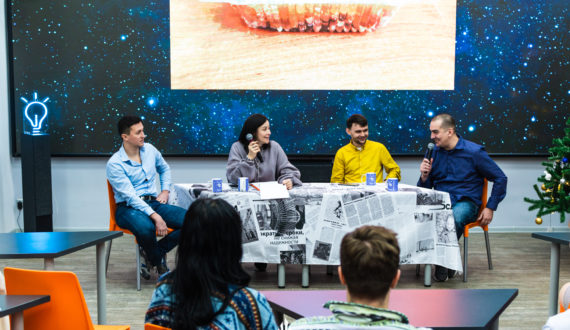 «Сегодня мне удалось побывать на ток-шоу «Язык Эйнштейна» в ИЦАЭ. Было очень весело и интересно. Все спикеры – настоящие специалисты, донесли всë понятным простому человеку языком. Меня повеселили новости про холодец и M&M’s в космосе, а от научных итогов в области биологии просто дух захватывает. Я узнала много нового и получила возможность узнать об этом непосредственно от учёных. В общем, очень крутой формат, крутые новости и крутые спикеры!» — поделилась впечатлением от мероприятия Анастасия Чумакова, научный волонтёр ИЦАЭ.