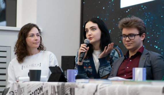 «Сегодня побывала на интереснейшем мероприятии от ИЦАЭ — устном журнале «Язык Эйнштейна». Все спикеры – настоящие профессионалы не только в своей области, но и в умении грамотно и лаконично подать материал. Очень приятно видеть огонь в глазах людей, которые рассказывают об открытиях, двигающих человечество вперёд. Особенно мне запомнилась новость про гравитационные волны нанометровой длины, пронизывающие Вселенную. Очень надеюсь, что скоро смогу приложить руку к новым удивительным открытиям в астрофизике. Было также очень приятно получить книгу про космос за вопрос спикеру», — поделилась впечатлением от мероприятия будущий астрофизик Анастасия Чумакова. «Язык Эйнштейна» — один из постоянных форматов ростовского ИЦАЭ. Учёные из самых разных сфер обсуждают последние новости науки.